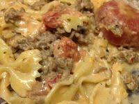 Toss the butter, hot pasta, sausage mixture and romano cheese together and serve.